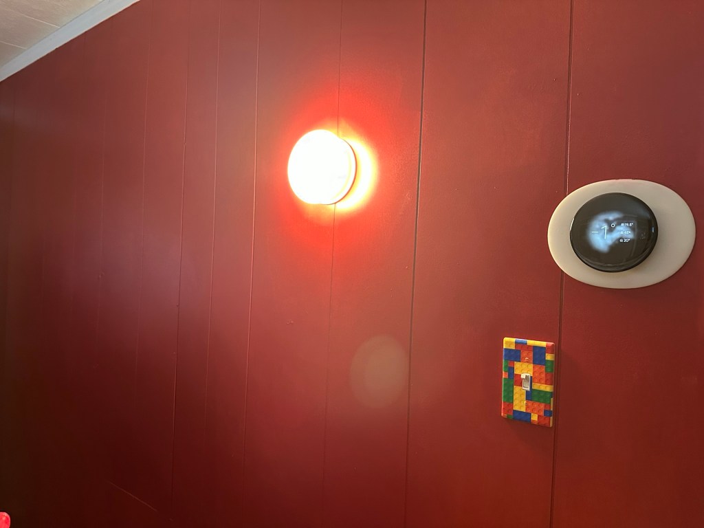 I decided that I needed to paint a wall before putting up my Lego shelves. This also involved changing 3 light fixtures and installing my new Nest Learning Thermostat. I did start with enjoying the coffee I brought back from Vacation