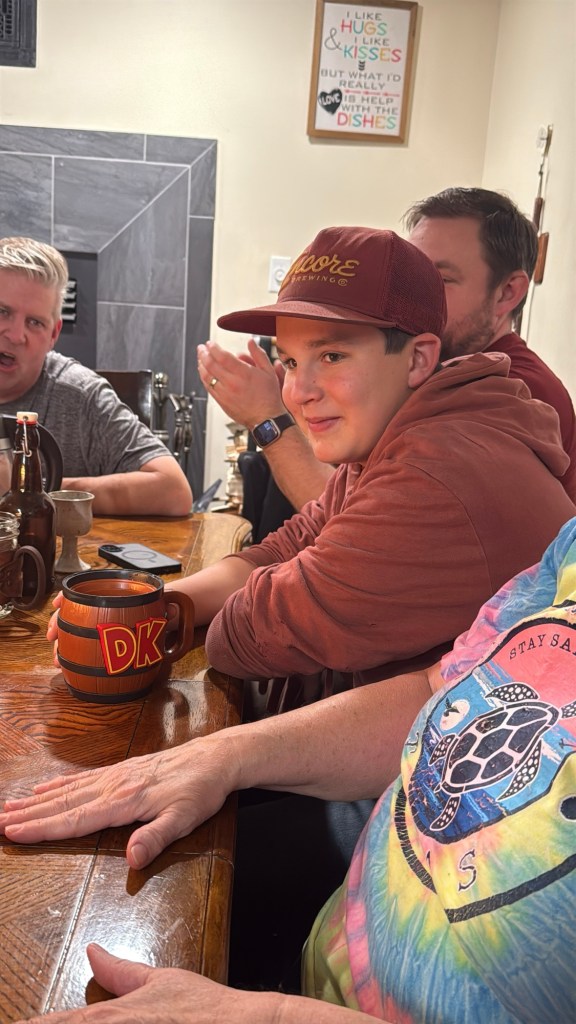 I was super thrilled to find out that Jill and Brett came out to play trivia tonight and we had fun being the 3 jolly old elves. We were in first place after the first round, but dropped to fourth after the second the music was really hard. It seems that none of us are very good at country.