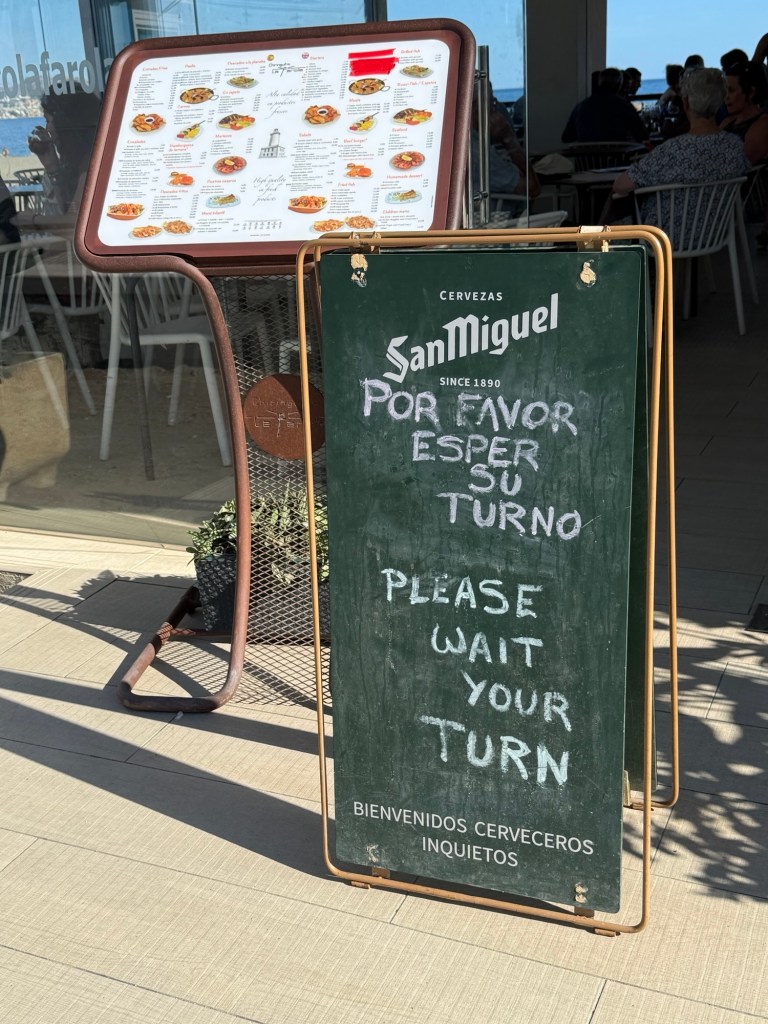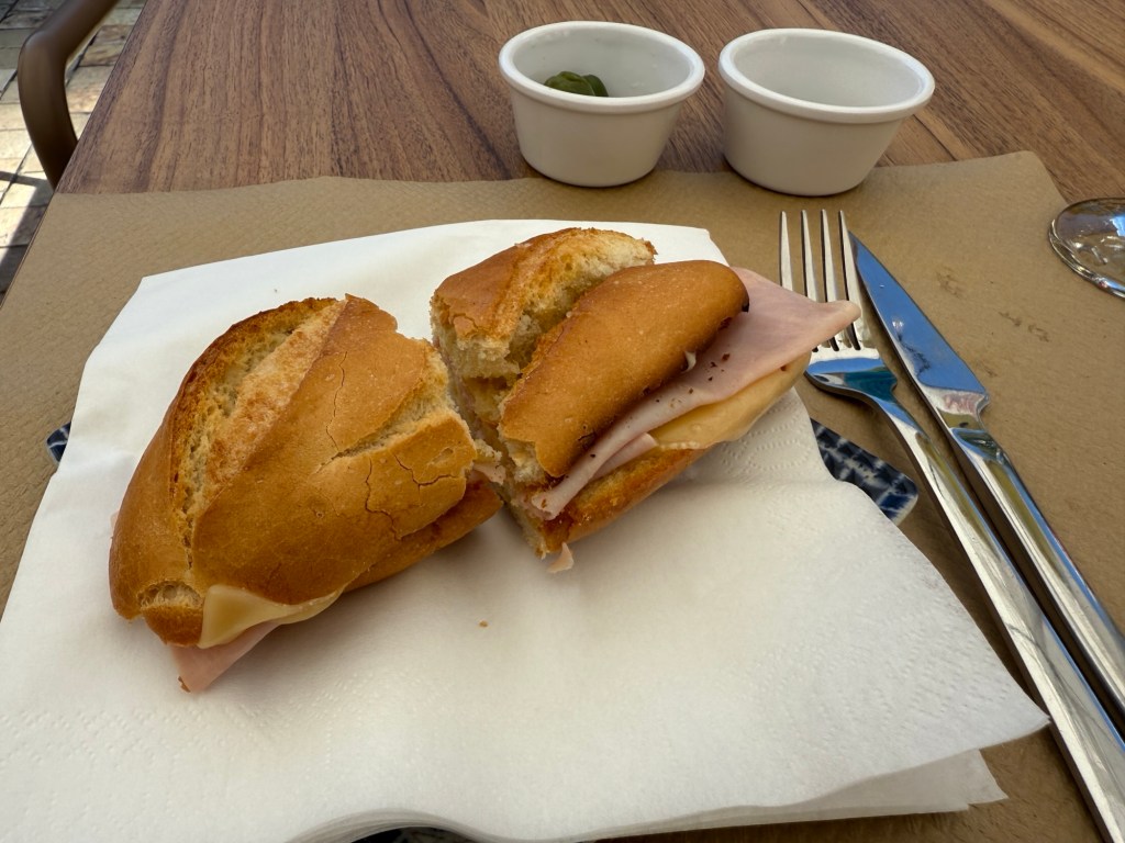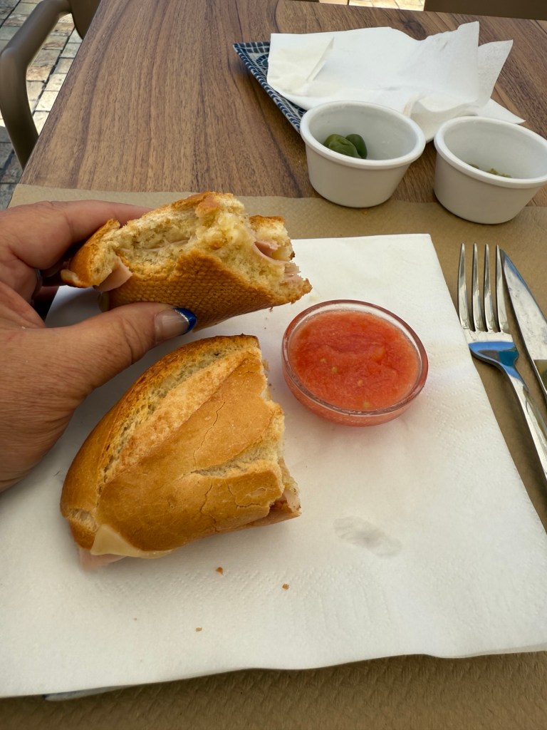 I wandered to find sustenance and had the best Sangria I have ever had and a food that translates as Smurf which is a small loaf of bread. I ordered ham, cheese and tomato and it came with the tomato on the side freshly mashed instead of ketchup. So delicious. I encouraged people who stopped to look at the menu to eat there and when I was done the young server gave me a couple suckers for ‘marketing’. Later in the day a crew member on the ship thanked me for recommendation!