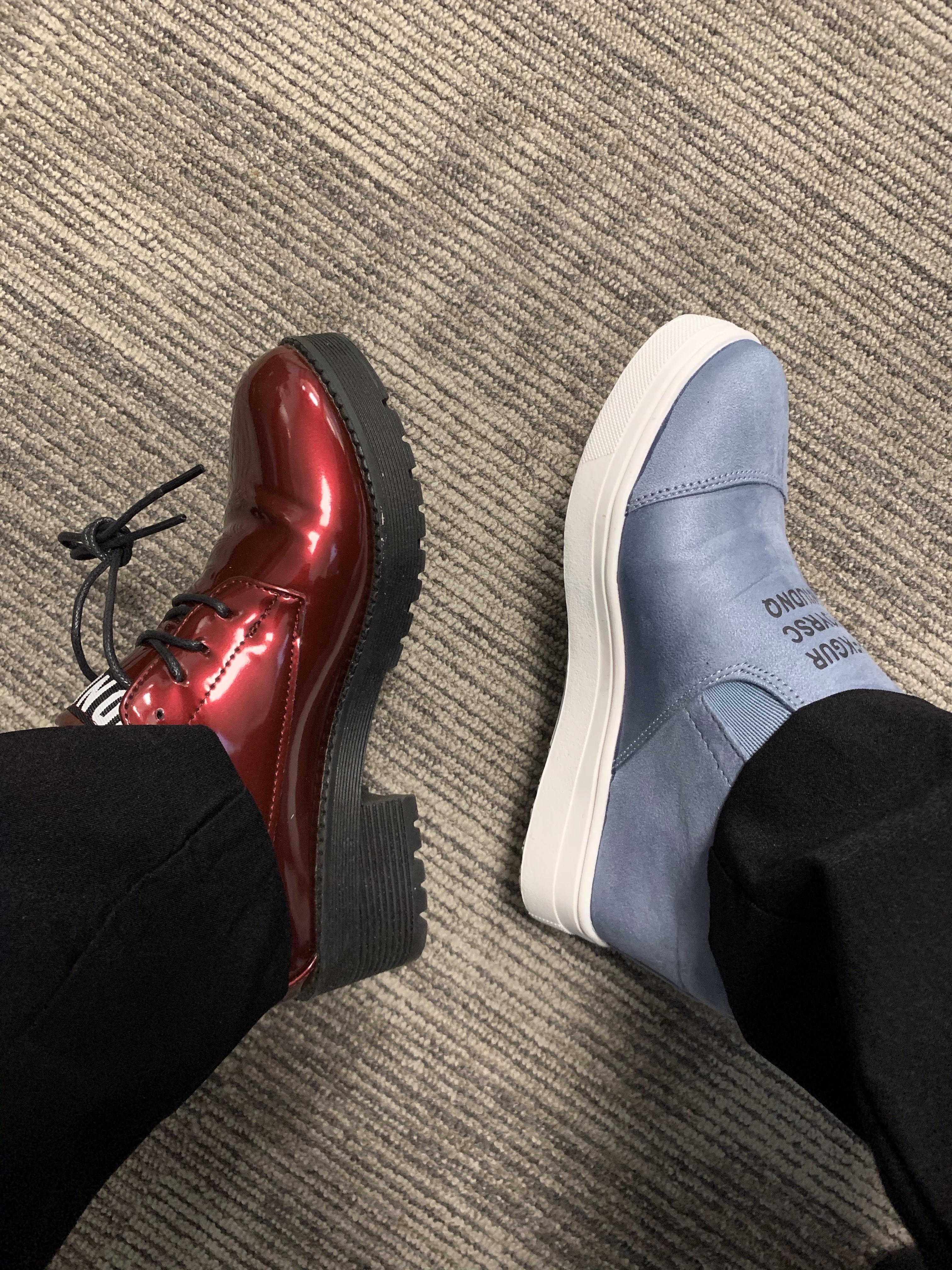 Day two of treadmill and no alcohol. A good and crazy multi-purpose day included the best chocolates from one of my young clients who knew I was sad yesterday and thought they might help. How truly old school and lovely of him. And it worked! I also finally received the two pair of shoes I ordered a couple weeks ago. They looked so tiny but fit and I really like them. There is weird stitched letters on the grey ones that did not show in the ad but I kind of like it. My jailbird shoes. The other pair has the cutest soles.